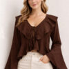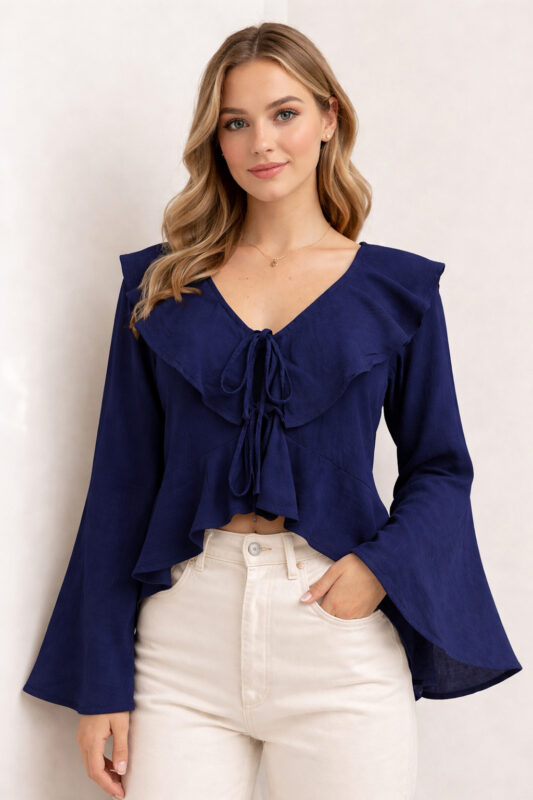 - Detalhes de Babados: Aplicados na parte superior, os babados trazem uma estética romântica e atual à peça.