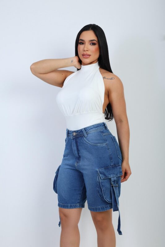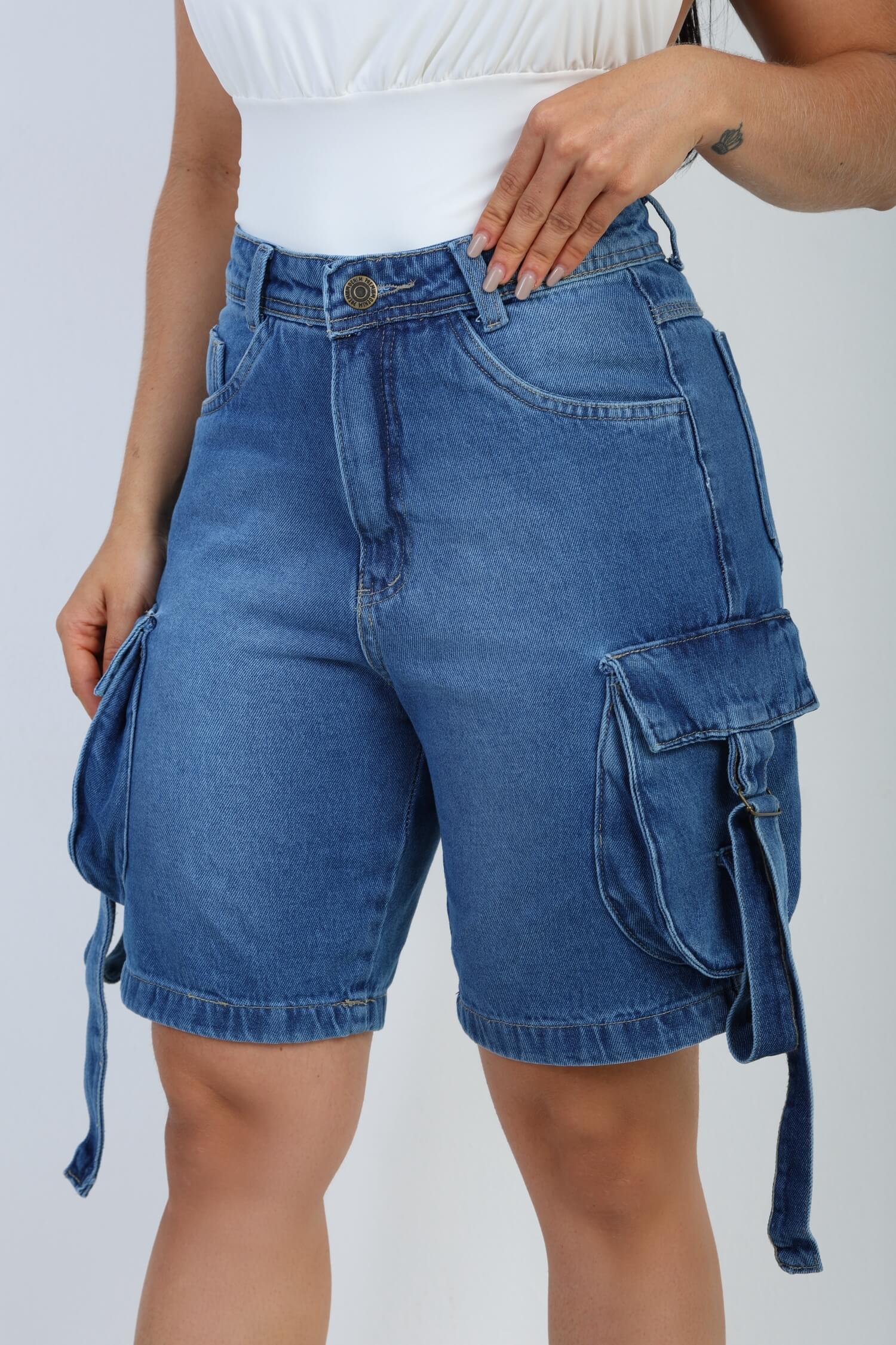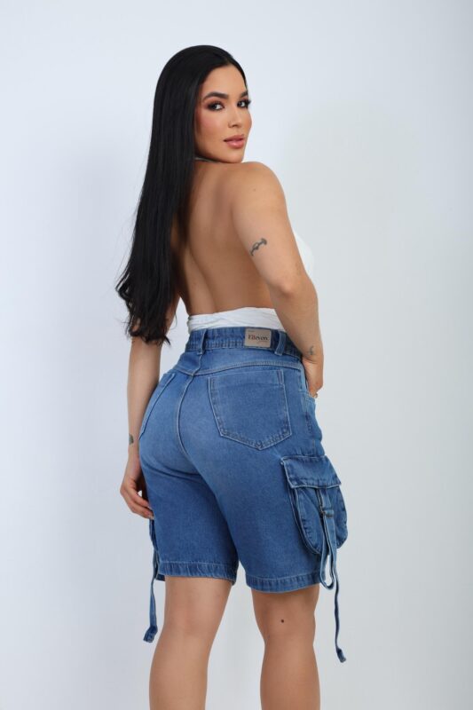 A Bermuda Jeans Cargo Bufante Azul Médio é perfeita para quem valoriza estilo, conforto e durabilidade, oferecendo um visual urbano, moderno e cheio de atitude para o dia a dia.