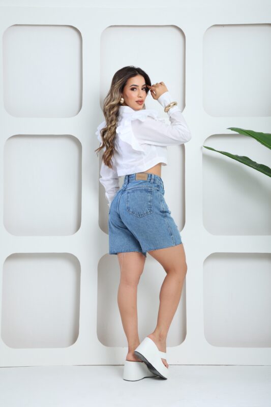 A Bermuda Jeans Reta Destroyed Elleven une modernidade, conforto e caimento perfeito em uma peça indispensável para o guarda-roupa contemporâneo. Produzida em 100% algodão, proporciona toque suave, frescor e excelente respirabilidade. Sua modelagem reta, aliada à cintura alta, alonga a silhueta, enquanto o detalhe destroyed adiciona um toque urbano e despojado ao visual.