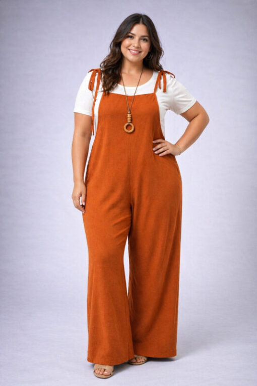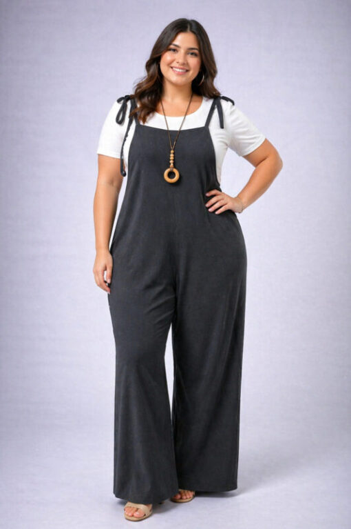 - Amplitude Confortável: O corte pensado para o bem-estar torna este macacão uma peça democrática, que veste diversos biotipos com leveza.