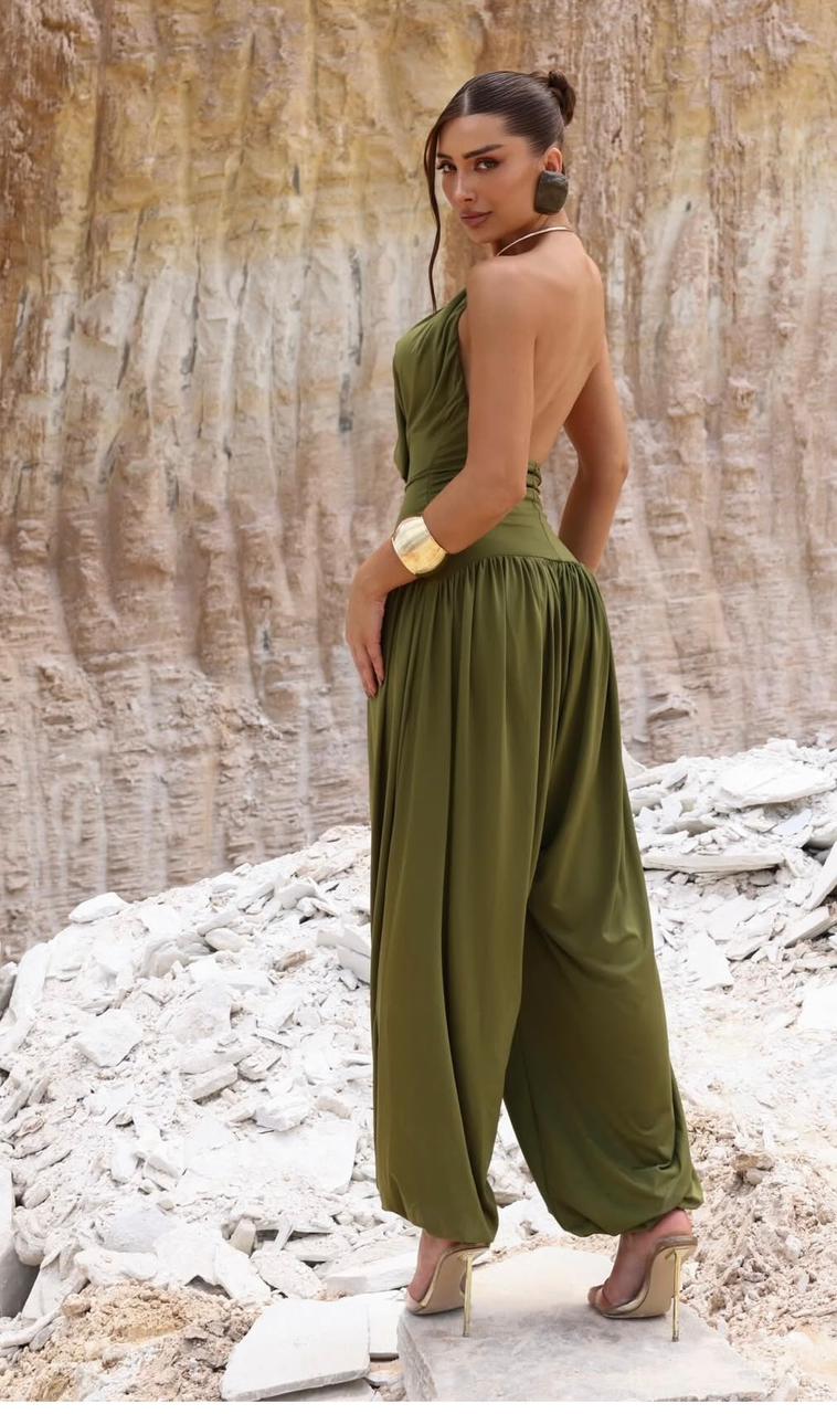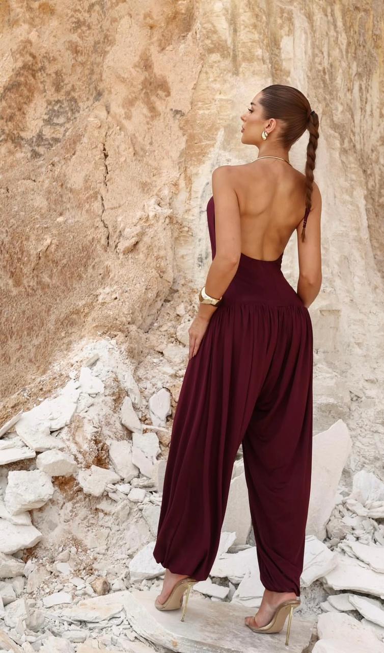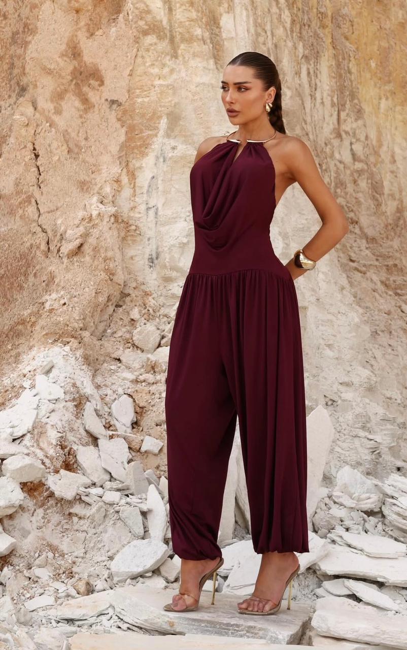 O Macacão Frente Única com Decote Drapeado é a escolha definitiva para quem deseja um visual moderno, impactante e extremamente sofisticado. Com um design que equilibra perfeitamente a sensualidade do decote profundo à leveza de uma pantalona soltinha, esta peça é a solução completa para produções que exigem presença e refinamento.