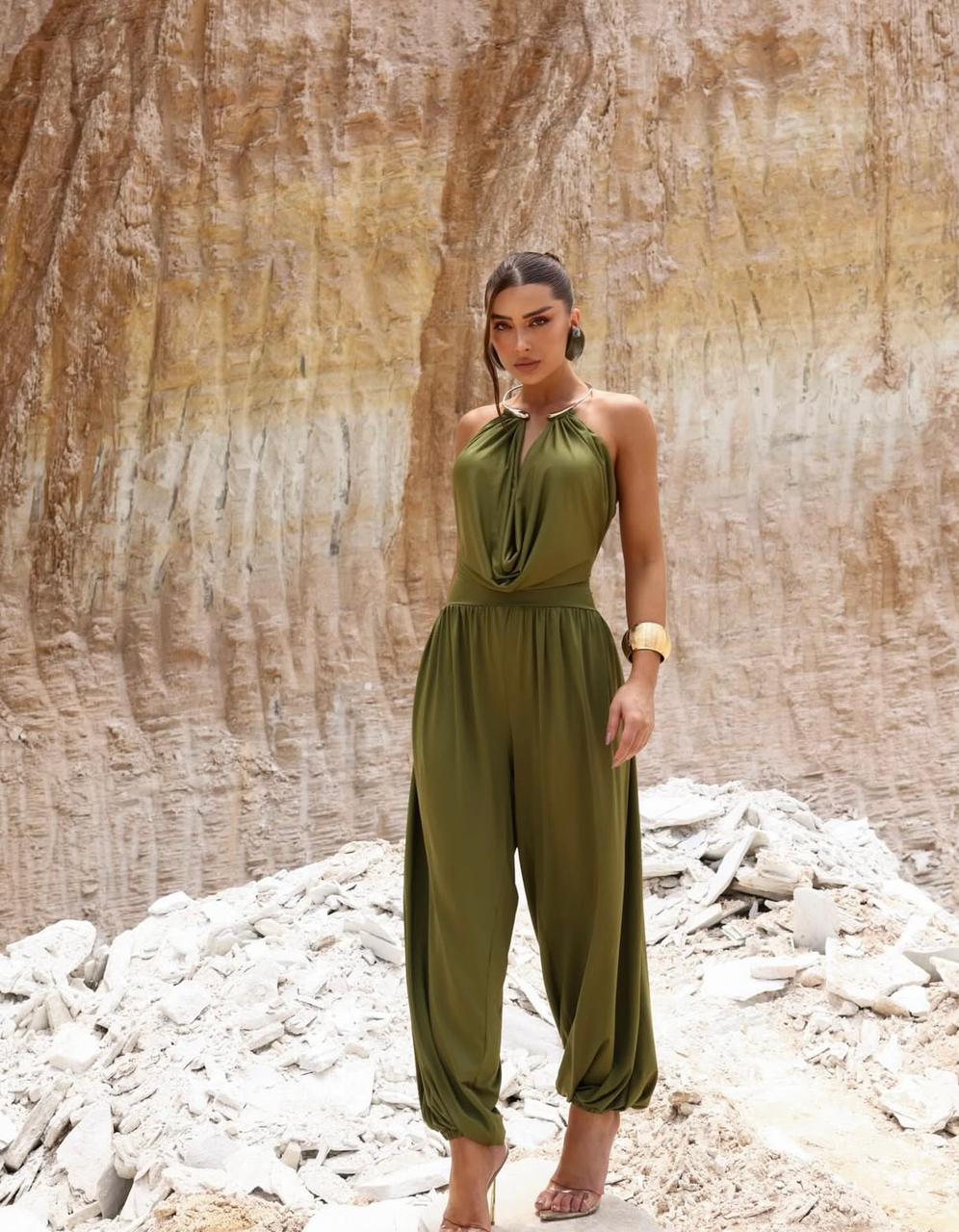 - Tecido de Alta Gramatura: Oferece um caimento fluido, garantindo que o macacão não marque o corpo e mantenha a sofisticação da modelagem.