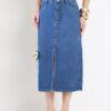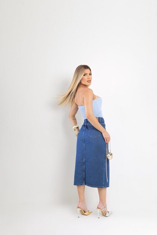 Saia Jeans Midi Fenda Frontal Elleven: Elegância, Conforto e Versatilidade