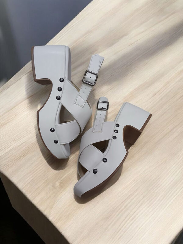 Sandália Salto Forrado com Tachinhas: Elegância Atemporal com Toque Retrô